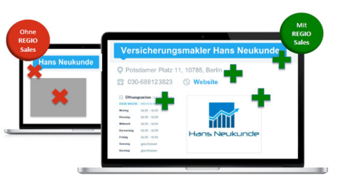 Ihre Kunden sind permanent auf der Suche nach den verschiedensten Unternehmen in der Region. Und das online. Wer in einer Online-Suche von Kunden gefunden werden will, muss präsent sein. Aktuelle und einheitliche Informationen sind hierbei essentiell, darum bieten wir Ihnen mit REGIO-Sales die optimale Lösung.