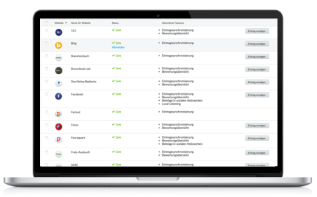 Synchronisation Ihrer Firmendaten in mehr als 50 Suchmaschinen, Verzeichnisse und Apps